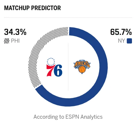 賽前,賽尼勝率美媒ESPN預(yù)測本場比賽,流言率尼克斯勝率65.7%,測明76人勝率34.3%。日比人勝